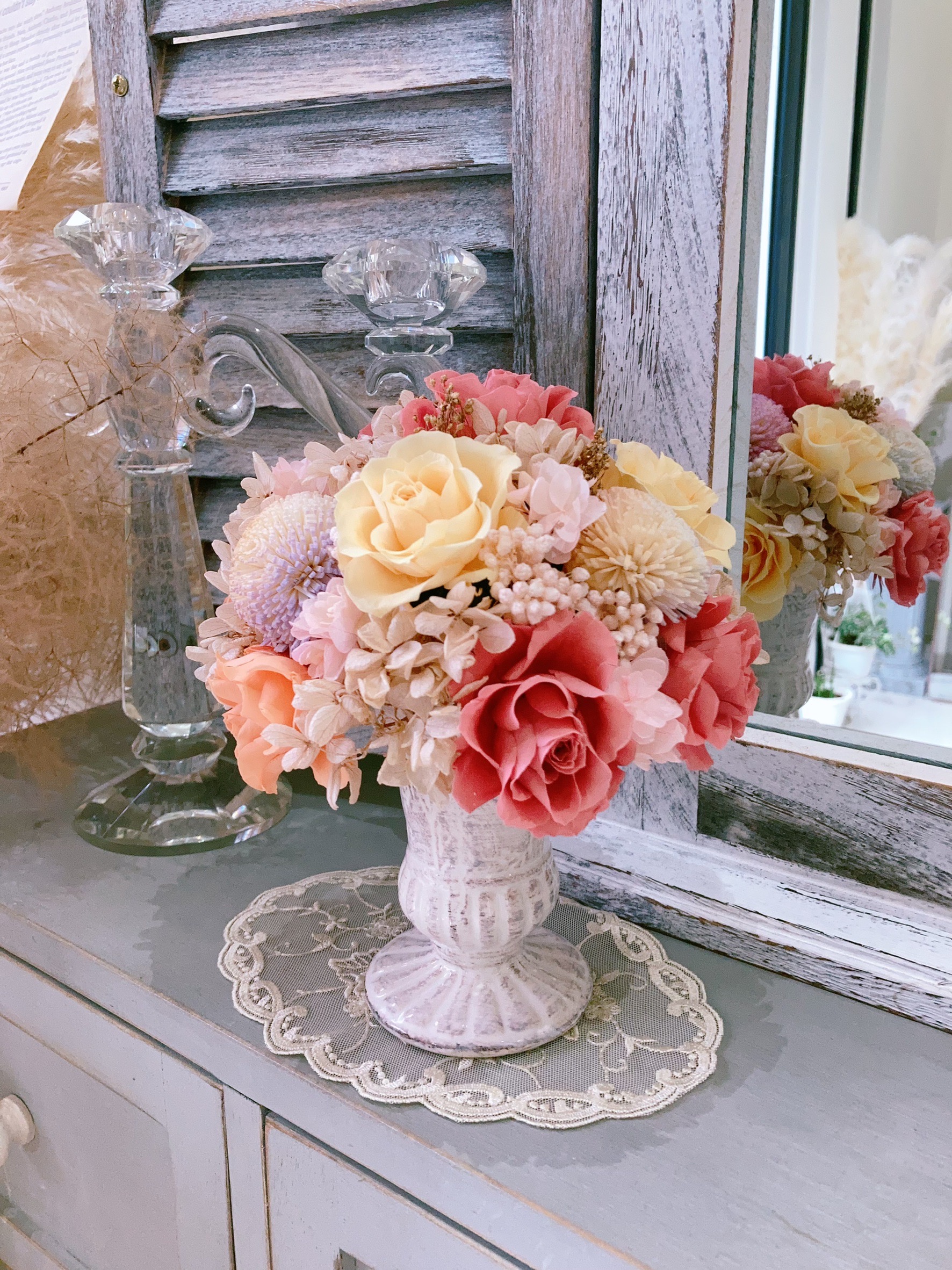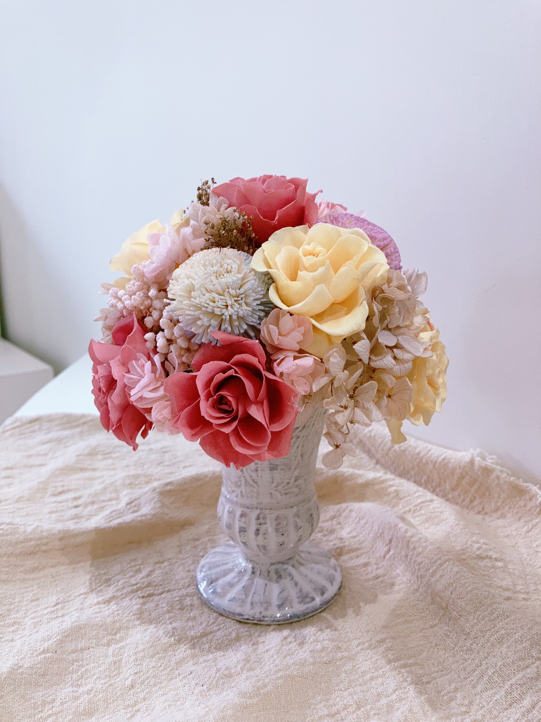 花材 :永生玫瑰、永生繡球、米香、索拉花