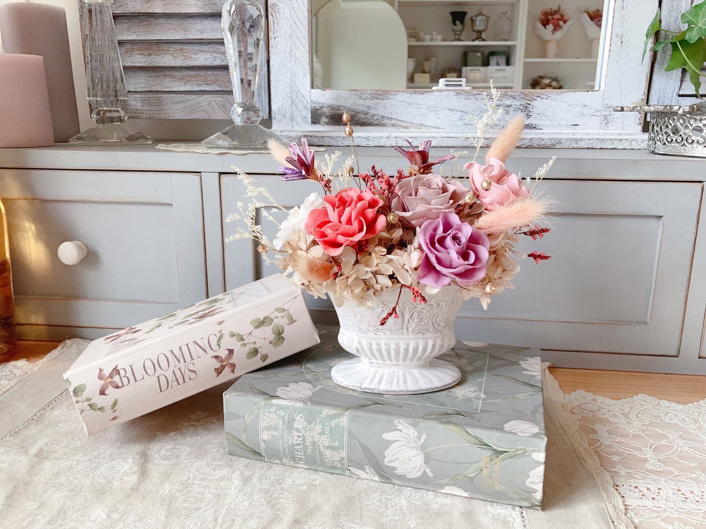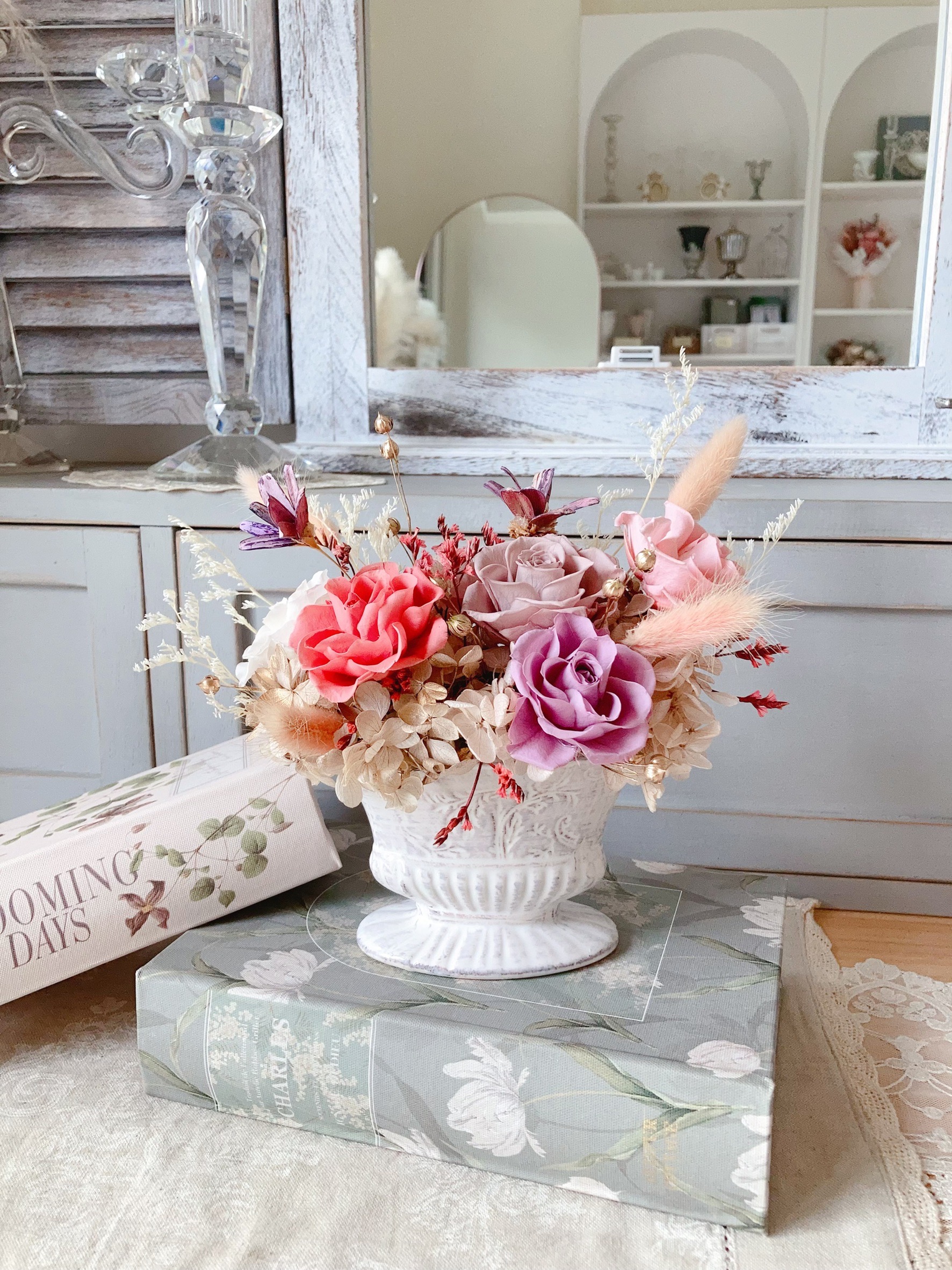 花材 :永生玫瑰、永生繡球、卡斯比雅、兔尾草